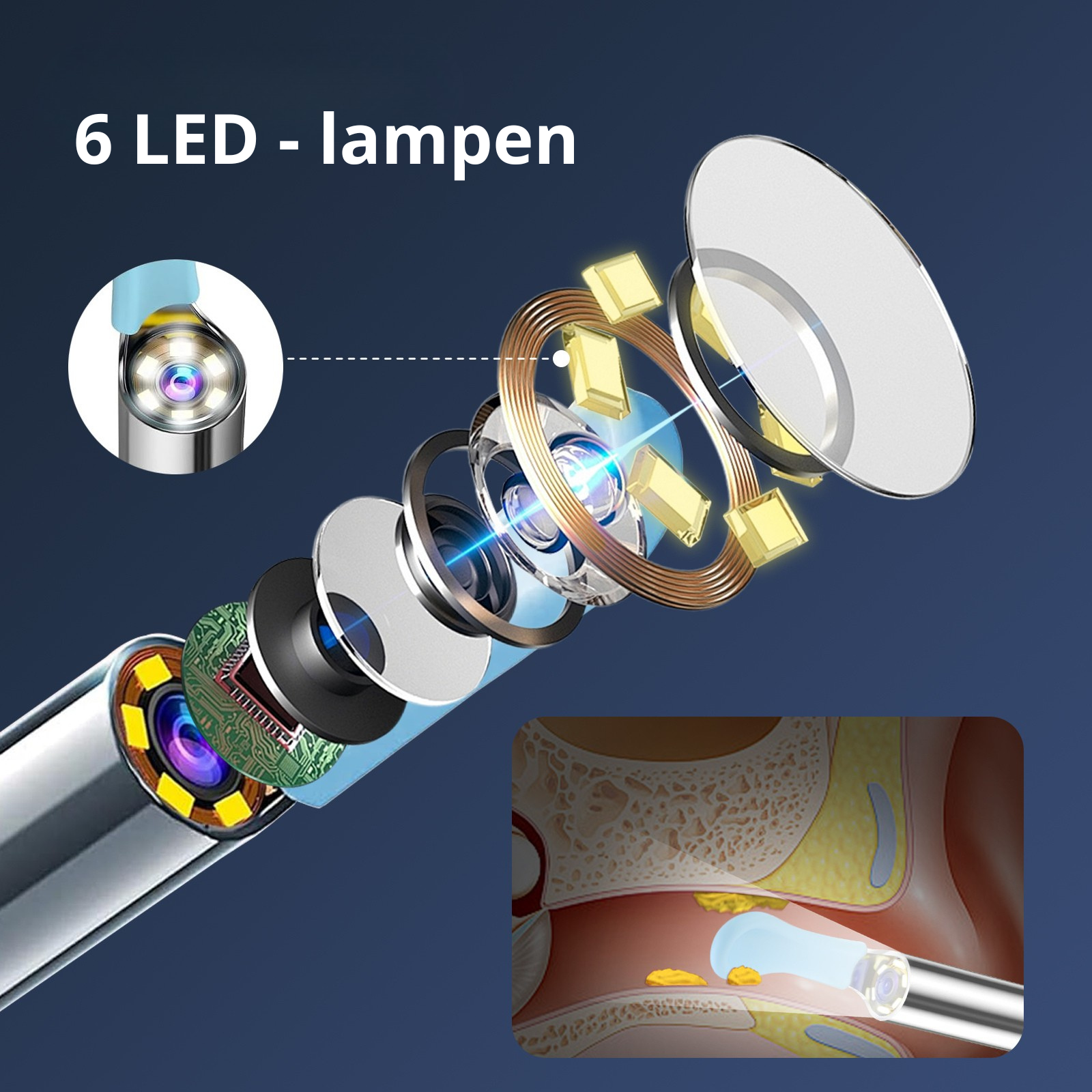 Ervaar de veiligste en meest precieze oorreiniging ooit met live HD-camera en LED-verlichting. Controleer alles direct op je smartphone en verwijder oorsmeer pijnloos en professioneel.